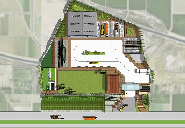 Spread over 2.5 Acres of land, this logistic yard is a living lab for sustainable master planning. The entire site is planned based on natural features of the land form with no cut and fill and integrating the larger part of land under green for very functional and ecological reason, stabilizing the soil, streamlining rain water runoff and enhanced ground water recharge. Welcoming green adorned with shrubs creates the arrival experience and large scale plantation in the front open space creates the gesture of rural context.