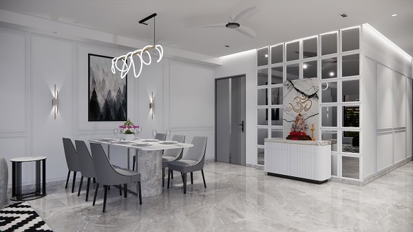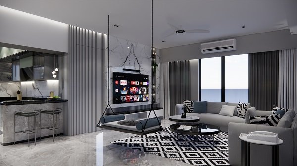 The design of the apartment reflects the specific breif of material form client offering an challenge for execution. But as it turns out the brief was used to make it an class apart with the endearing touch of clients belief.